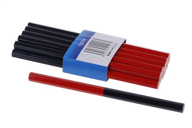 Ceruzka s tuhou HB – stredná tvrdosť, nehrotená, použitie – drevo, stavba, dvojfarebné prevedenie červená / modrá.