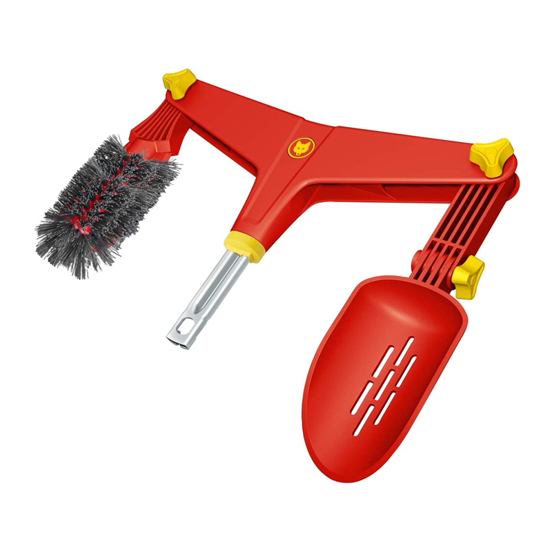 Vymeniteľná kefová hlava s integrovanou škrabkou na uvoľnenie silného znečistenia a lístia. Lopatka na opačnej strane na odstránenie nečistôt.