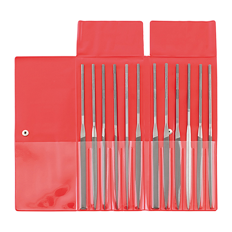 Použitie: Pre najjemnejšie a najpresnejšie spracovanie v odvetví výroby strojov a nástrojov. Obsah sady: 1 plochý obdĺžnikový ihlový pilník 1 plochý obdĺžnikový ihlový pilník s oblými hranami 1 plochý špicatý ihlový pilník 1 plochý špicatý ihlový pilník s oblými hranami 1 trojhranný ihlový pilník 1 štvorhranný ihlový pilník 1 pologuľatý ihlový pilník 1 guľatý ihlový pilník 1 ihlový pilník Barett 1 nožový ihlový pilník 1 jazýčkový ihlový pilník 1 jazýčkový ihlový pilník kulatooválný