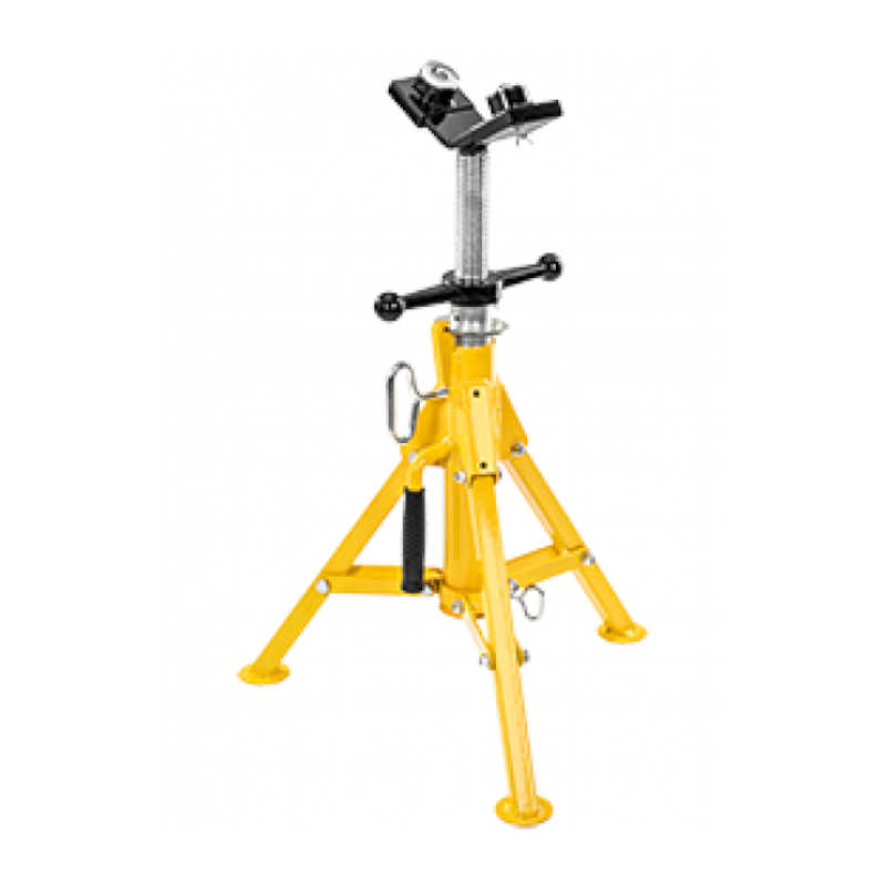 Výškovo nastaviteľná podpera materiálu s guľovým ložiskovým vedením pre otáčajúci sa a stabilný trubkový a tyčový materiál, pre rúry Ø 1/8–4”, tyčový materiál Ø 6–115 mm.