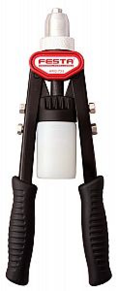 profesionálne nitovacie kliešte FESTA – Cr-Mo čeľuste pre trhacie nity priemeru 2,4 – 3,2 – 4,0 – 4,8 mm materiály nitov hliník, oceľ, nerez, meď robustný oceľový rám, plastové rukoväte, kľúč pre ľahkú výmenu koncoviek jednotlivých priemerov bezpečná pla