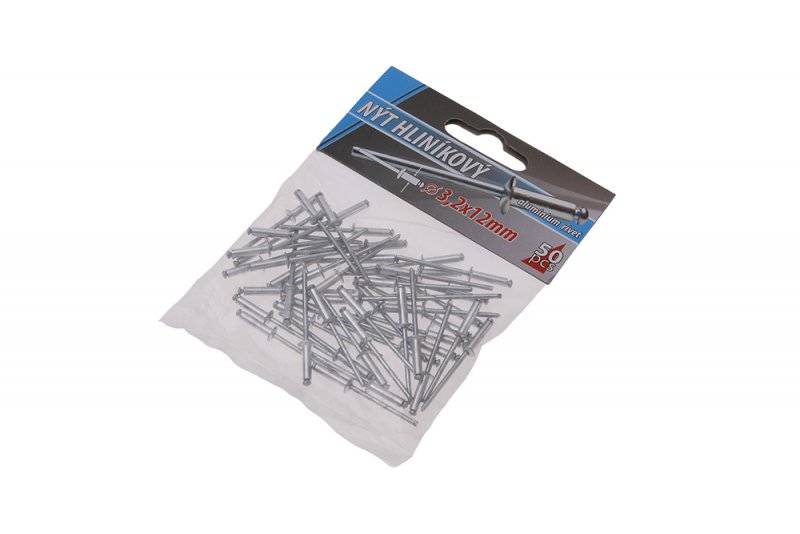 Klasické trhacie slepé alumíniové nity priemer 3,2 mm dĺžka 12mm v malom balení 50 kusov, vhodné pre malospotrebiteľov. •