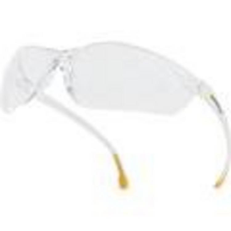 Polykarbonátové jednošošovkové okuliare. Integrované sedielko z polykarbonátu. Bočnice z polykarbonátu. Konce bočníc z PVC s ochranou proti šmyku. Číre.