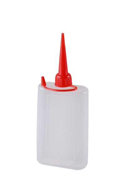 Plastová olejnička s objemom 90 ml, biely, transparentný zásobník s červenou plastovou výtokovou hubičkou. Veľmi univerzálne použitie na mazanie rôznymi olejmi.