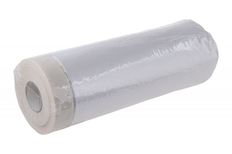 Krycia samolepiaca páska s fóliou, rozmer: 180 cm (rozvinutá šírka fólie) x 30 m (dĺžka návinu), použitie: ako ochrana plôch proti znečisteniu, samolepiaci prúžok umožnuje ľahké uchytenie, fóliová časť sa po aplikácii – prilepenie rozvinie a chráni povrc