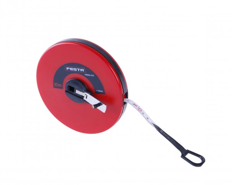 Kvalitné a presné sklolaminátové pásmo, páska zakončená očkom s gumovou ochranou proti vytrhnutiu, CE certifikát – vhodné na kalibráciu, sklopná navíjacia rúčka, pútko.