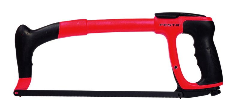 Hliníkový rám, mäkčená gumová PTR rukoväť, 300mm oceľový plátok s kalenými zubami, plastová skrutka na rýchlu výmenu plátku.
