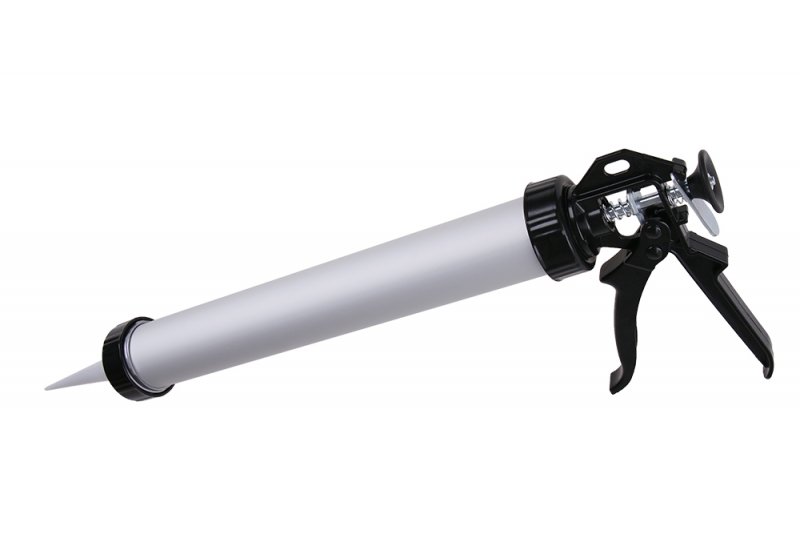 Vytlačovacia pištoľ na tuby 600 ml, uzavreté rúrkové Alu telo, kvalitný zosilnený oceľový pojazdový aj tlačný mechanizmus, odolná kovová rúčka, náhradné špičky – aplikátory 38014, použitie: na vytláčanie tmelov v PVC vreckách 600ml.