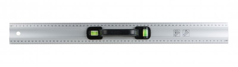Hliníkové pravítko s rukoväťou, dĺžka 60 cm, horizontálna a vertikálna libela, obojstranná milimetrová stupnica.