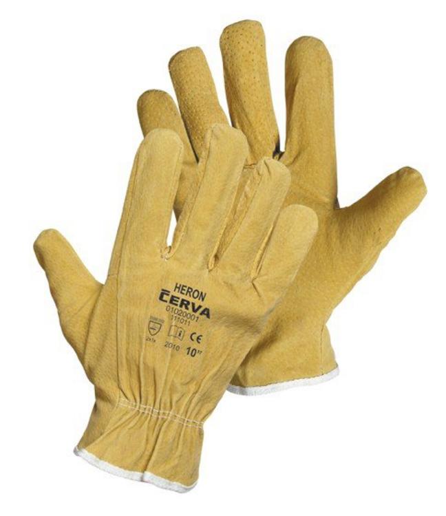Celokožené rukavice z hovädzej lícovky v dlani a na prstoch a hovädzie štiepenky na chrbte.