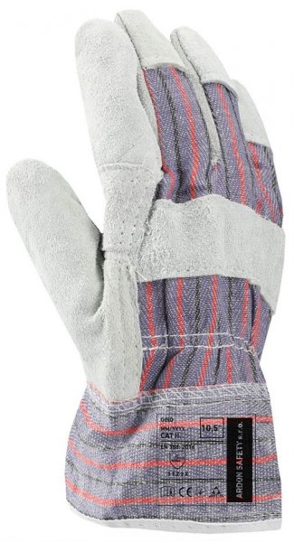 Dlaň z hovädzej štiepenky, chrbát a manžeta z bavlnenej tkaniny, CE EN 388, veľkosť 10,5.