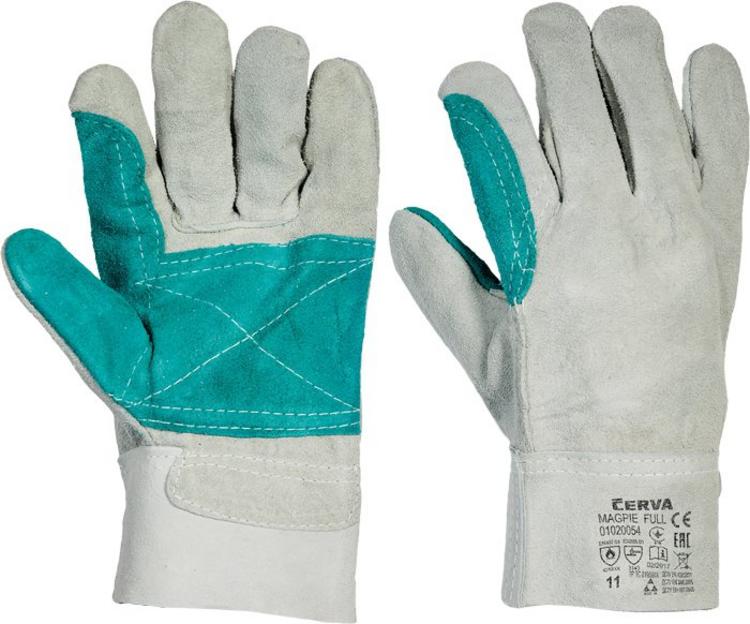 Rukavice z hovädzej štiepenky, zosilnená dvojitá vrstva v dlani na palci a ukazováku a so 7 cm manžetou.