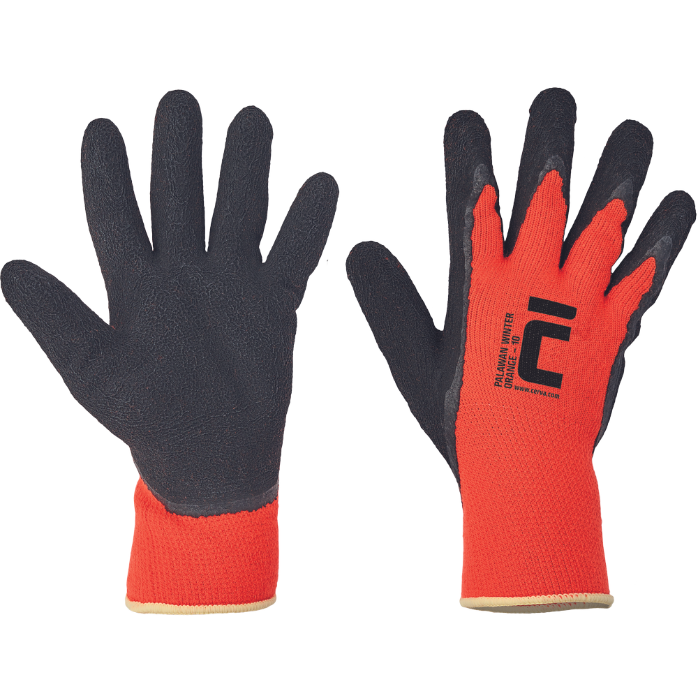 Zateplené pletené bezešvé nylonové rukavice s vrstvou mikorporézního paropropustného latexu v dlani a na prstoch a pružným nápletem na zápesti.