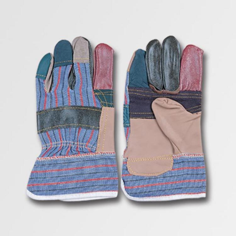 Dlaň z rôznofarebnej lícovej nábytkovej hovädziny, chrbát a manžeta z pruhované bavlnenej látky, podšívka v dlani.
