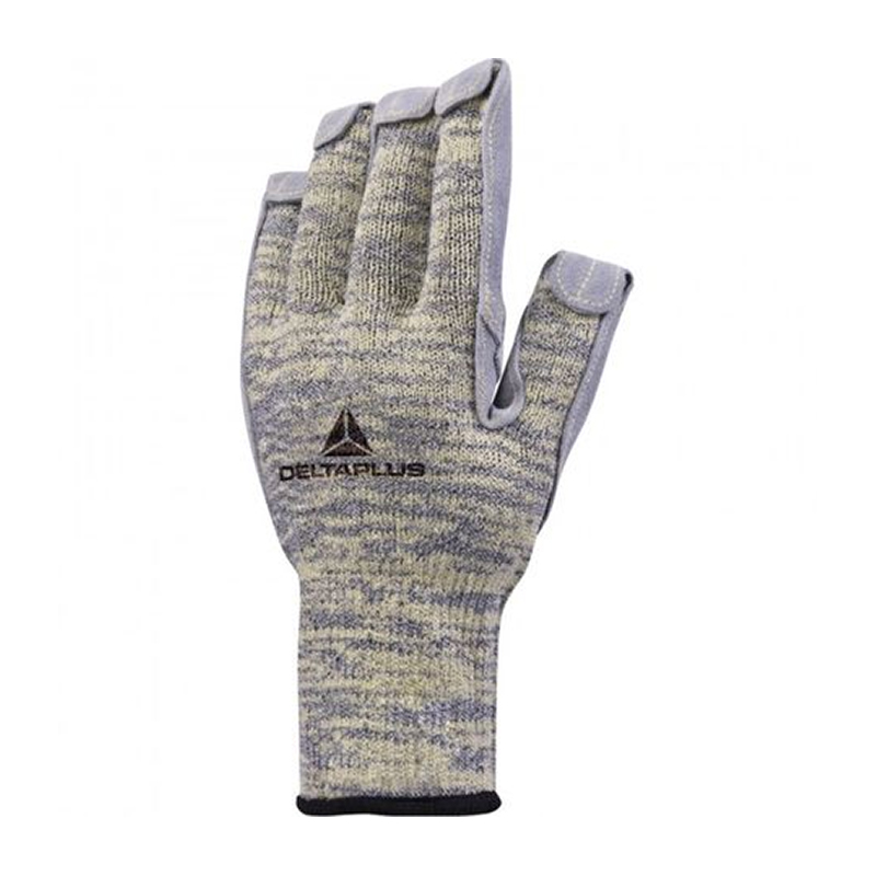 TAEKI® 5 vysoko odolné polyetylénové vlákno. Hovädzia koža na dlani a prstoch. Gauge (Hrúbka) 10. Podklad: Vlákna TAEKI 5 (syntetické: vysokoodolné). Hovädzia koža – štiepanka.