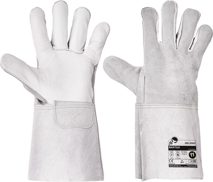 Rukavice z hovädzej štiepenky, byvolia lícovka na dlani pre zvýšenie komfortu a lepší úchop, šité kevlarovou niťou, zváračská kategória B.