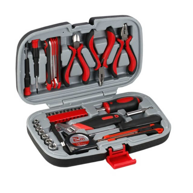 Malá, ale obsahovo univerzálna sada dielenského náradia pre domácnosti, do auta, a pod. prehľadná organizácia, ľahká manipulácia a priestorovo nenáročné uloženie v plastovom kufri