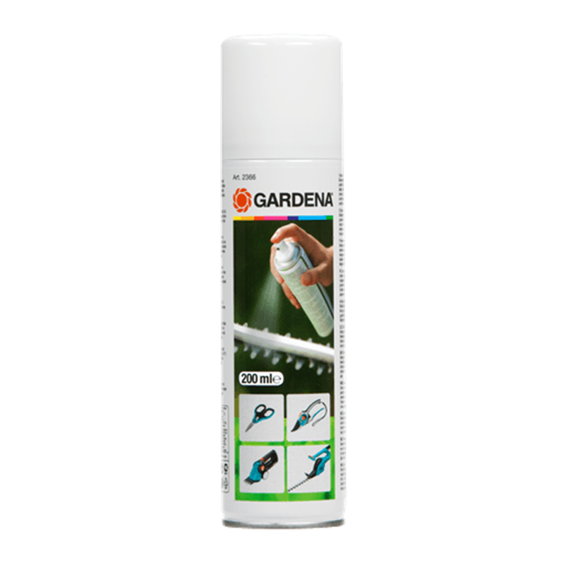 GARDENA čistiaci spray je ideálny na údržbu záhradného náradia. Zlepšuje klzné vlastnosti náradia a znižuje opotrebenie nožov. Odstraňuje nečistoty a zabraňuje korózii kovových častí. Je biologicky odbúrateľný a hospodárny. Objem: 200 ml.