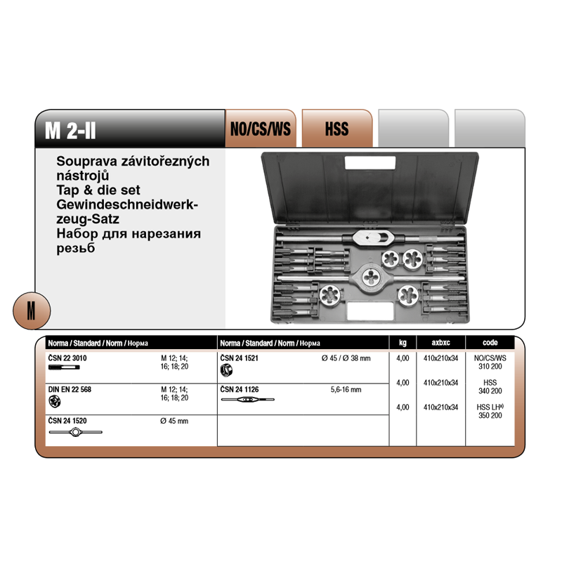 M14, M18, M20; ČSN 241521: 45/38 mm; DIN EN 22 568: M12,