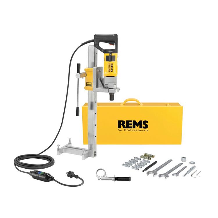 Elektrická diamantová jadrová vŕtačka pre jadrové vŕtanie v betóne, železobetóne do ?O102 (132) mm, murive a iných materiáloch do ?O162mm. K vŕtaniu na sucho alebo s výplachom, s vŕtacím stojanom, V pevnom kufri z oceľového plechu.